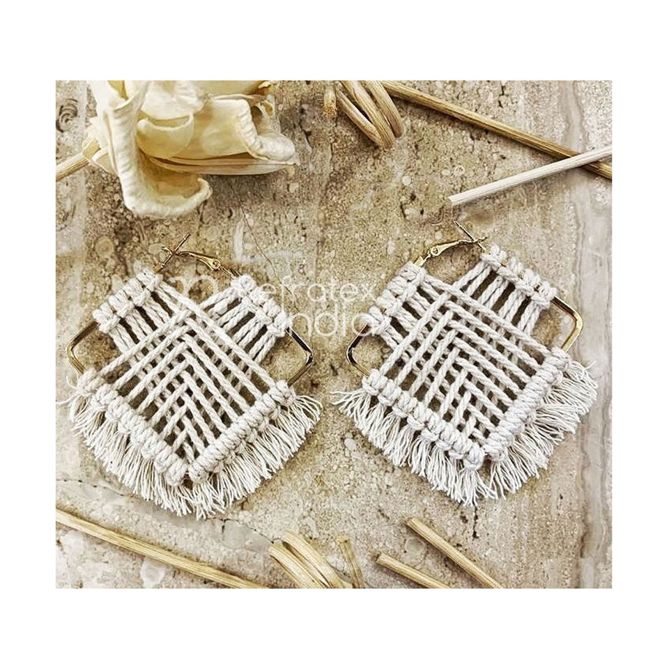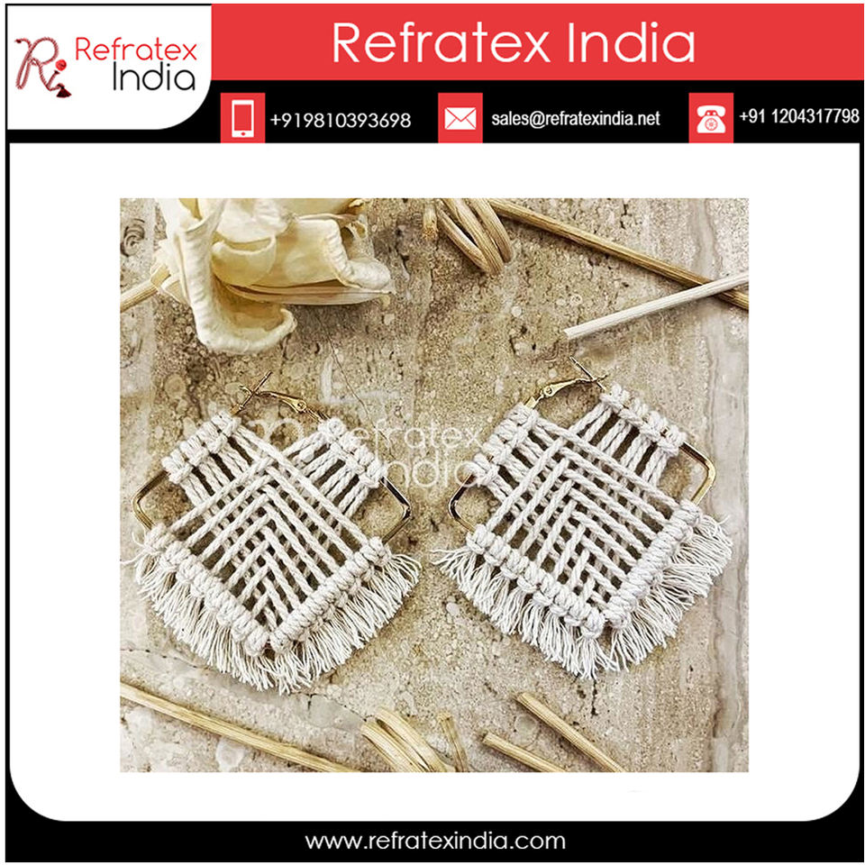 ต่างหูคุณภาพดีผ้าฝ้าย Macrame เครื่องประดับสำหรับผู้หญิง