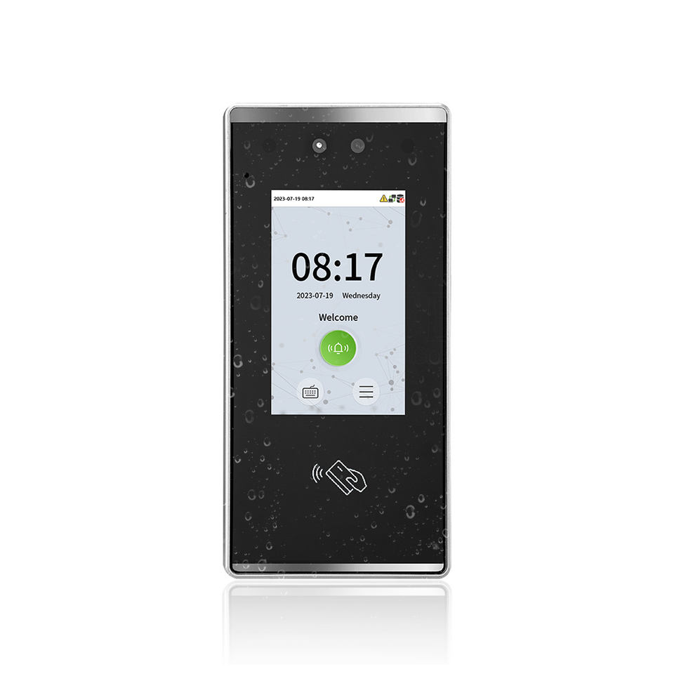 แผงกระจก IP65 WiFi กลางแจ้งระบบจดจำใบหน้าตรวจจับเวลาเข้างานระบบควบคุมการเข้าออกของ Linux SDK API