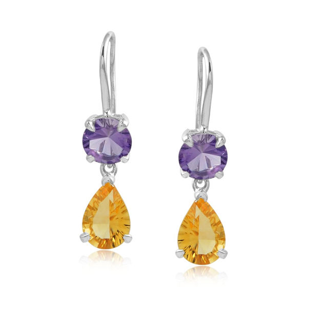 เครื่องประดับคุณภาพดี925เงินสเตอร์ลิงเครื่องประดับต่างหูแบบห้อยหินอเมทิสต์ธรรมชาติ