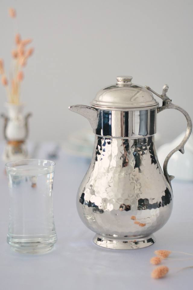 Metal silver water jug pitcher