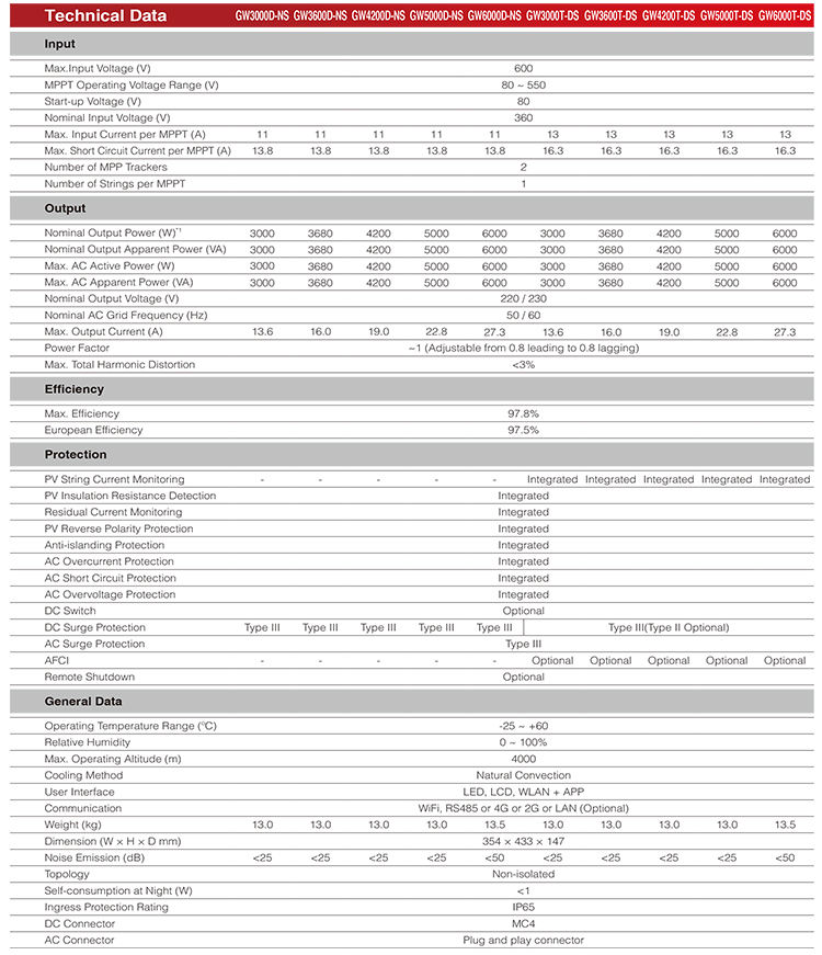 DNS Series 3-6KWหมายเลขรุ่น