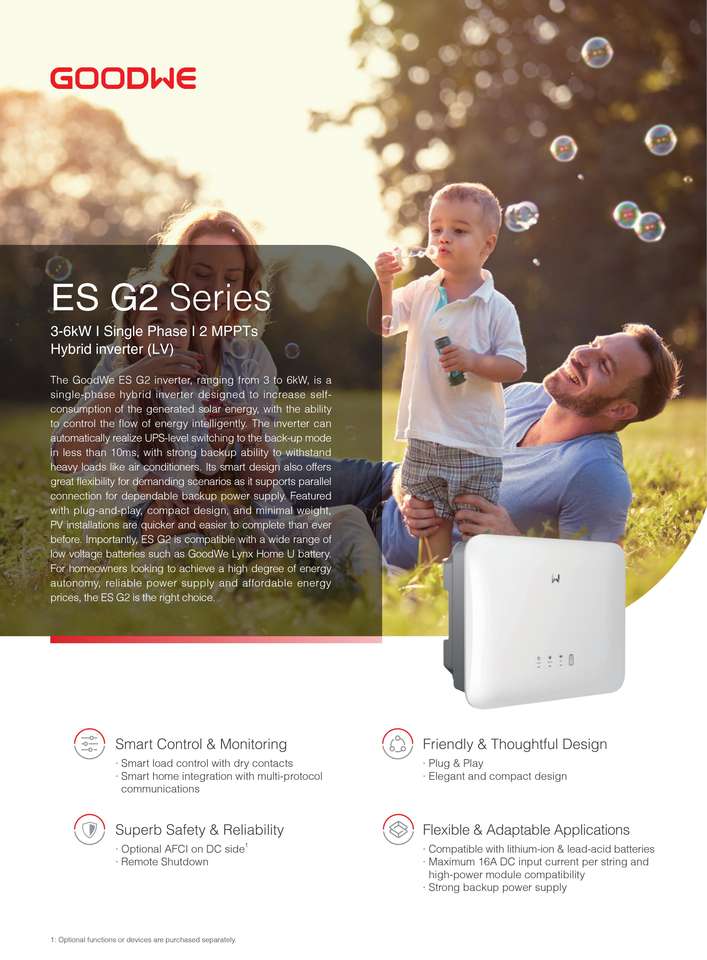 Goodwe ES G2 3-6kw ชุดอินเวอร์เตอร์ไฮบริด3.5KW 3kW 3.6kw 5KW 6KW เฟสเดียว WIFI IP65 230V ไฮบริดอินเวอร์เตอร์พลังงานแสงอาทิตย์