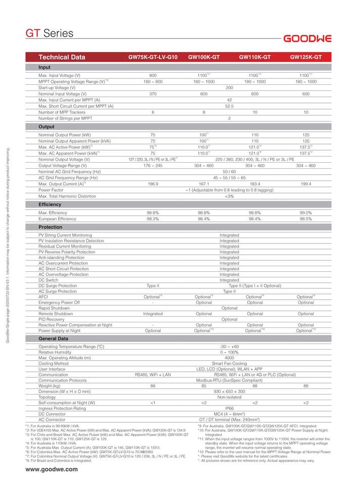 Goodwe GT ชุด125KW 100KW อินเวอร์เตอร์ตารางสามเฟสในอุตสาหกรรมการค้าใช้ในอุตสาหกรรมที่มีฟังก์ชั่นการสนับสนุนตารางขั้นสูง