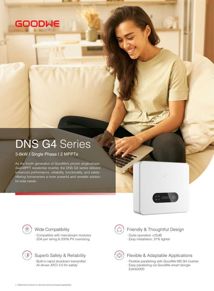 Goodwe GW3-6K-DNS-G40อินเวอร์เตอร์เชื่อมต่อกริดสำหรับบ้านอพาร์ทเมนต์วิลล่าโครงการพลังงานแสงอาทิตย์สำหรับที่พักอาศัย