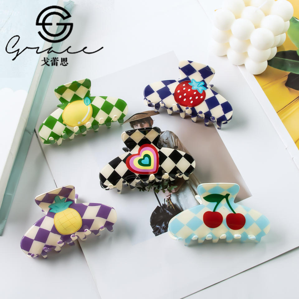 เครื่องประดับ goreisi กิ๊บติดผมรูปการ์ตูนรูปกรงเล็บผลไม้ปลายสูงสำหรับด้านหลังของศีรษะกิ๊บติดผมรูปปลาฉลามเครื่องประดับผมของผู้หญิง