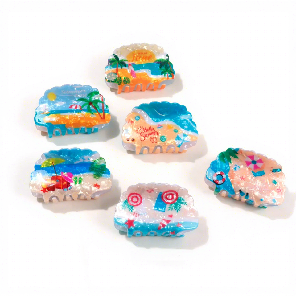 Goreisi กิ๊บหนีบผมรูปเปลือกหอยพลาสติกสำหรับฤดูร้อนชายหาดมหาสมุทรฮาวายของผู้หญิงสไตล์ยุโรป-อเมริกัน