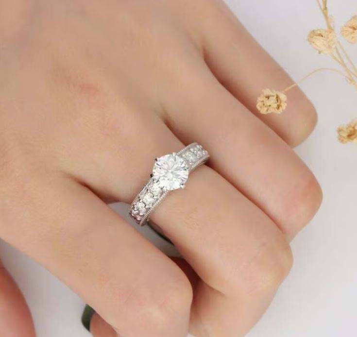 แหวนเพชรมอยส์ซอไนต์2CT สุดคลาสสิก S925แหวนหมั้นและวันครบรอบแต่งงานแหวนแต่งงาน
