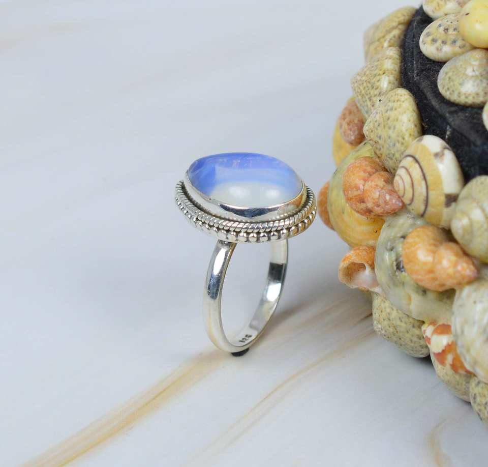 แหวนเงินแท้925งดงามอัญมณีโอปอลสีนมทำด้วยมือและออกแบบด้วยความระมัดระวังแหวนโบราณมีสไตล์สำหรับผู้หญิง