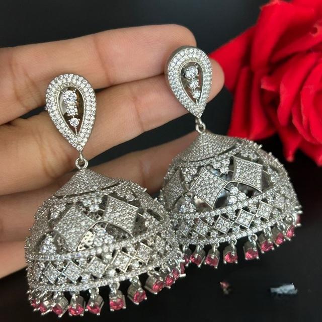 ต่างหูเพทายสีเงินคุณภาพดีที่สุดสวยทันสมัยสวมใส่หินโฆษณามองหางานปาร์ตี้คอลเลกชันสวมใส่สำหรับผู้หญิง