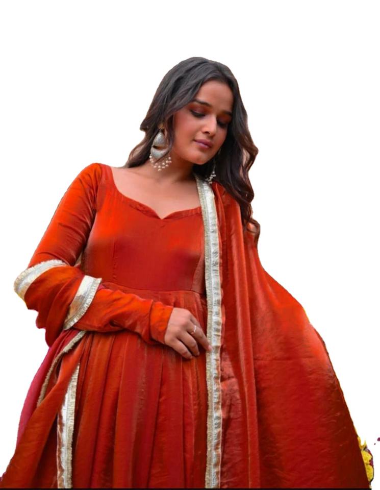 ผ้าไหมฟานดี้เนื้อหนา สีสันงดงาม ดูมีค่า มีสไตล์แบบวัฒนธรรมมหารัชตรี ทรงกระโปรงบานใหญ่ ชุดคุรตะ/อานาร์กาลี ดีไซน์เนอร์