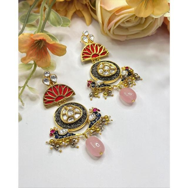 ต่างหู Kundan ดีไซน์สวยพร้อมต่างหูหินสำหรับผู้หญิงสาวๆสำหรับคอลเลกชันชุดแต่งงานแบบดั้งเดิม