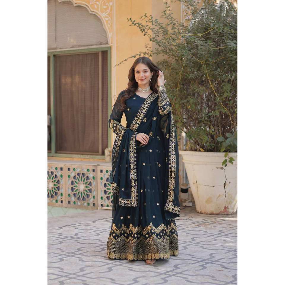 ชุดราตรีแสนสวยปักเลื่อมและ zari สำหรับใส่ไปงานปาร์ตี้