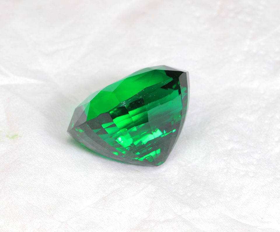 พลอยแก้วสีเขียวมรกตสังเคราะห์ทรงคุชชั่นสวยงาม สามารถปรับแต่งได้ ราคาขายส่ง