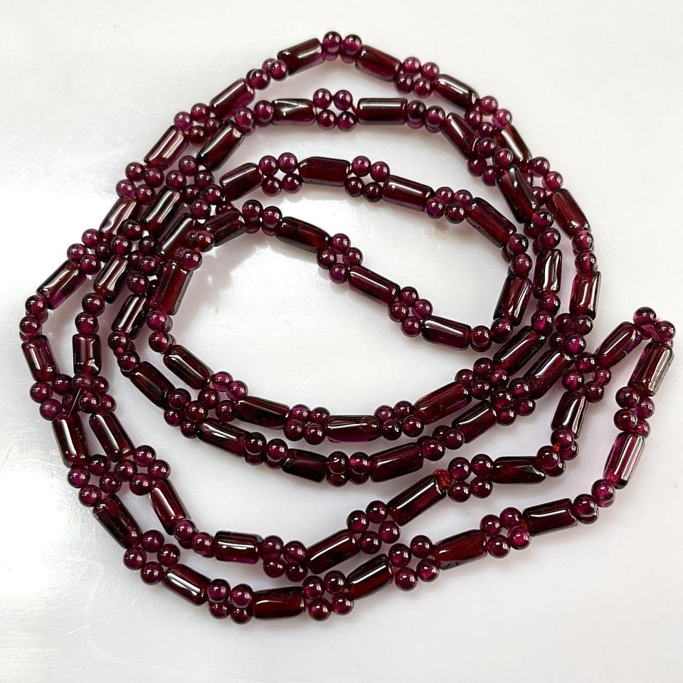 สร้อยคอลูกปัดโกเมนทำด้วยมือสีแดง