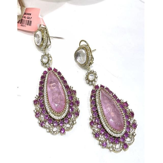 ต่างหูเพทายทองเหลืองคุณภาพสูงสวยพร้อมสัมผัสเป็นประกายฟิวชั่นสำหรับผู้หญิงดูปาร์ตี้ตอนเย็นแฟชั่น
