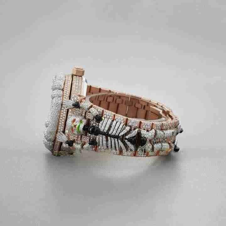 นาฬิกาข้อมือผู้ชายดีไซน์หัวกะโหลกฮิปฮอปสุดเท่ ประดับเพชรแล็บโกรว์ทรงกลมเจียระไนแบบบริลเลียนท์ ความใสระดับ VVS พร้อมระบบกลไก
