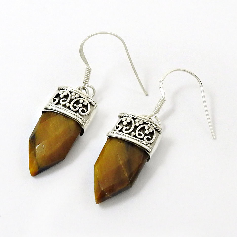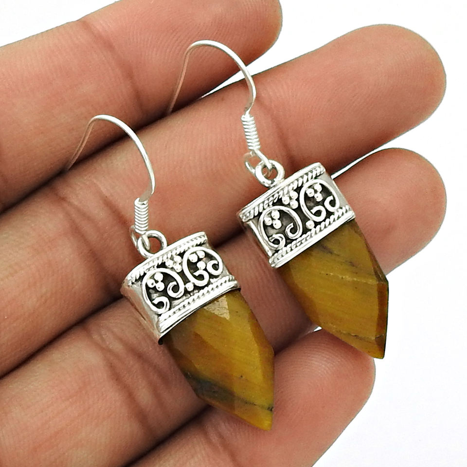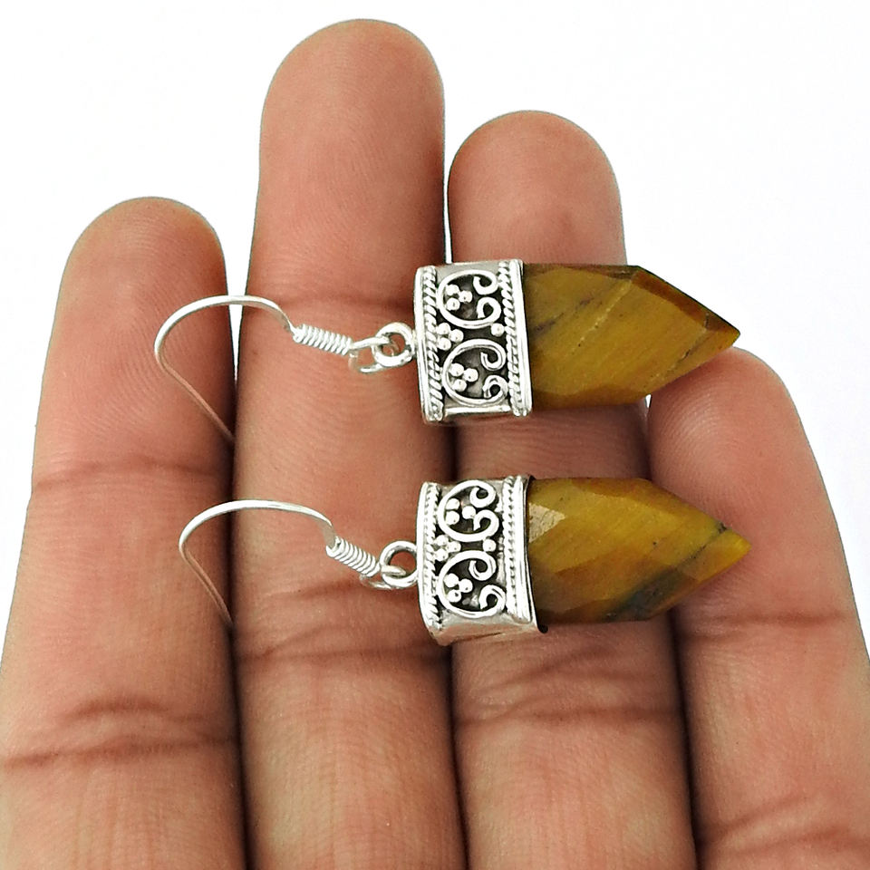 925พลอยตาเสือธรรมชาติสีเงินสเตอร์ลิงต่างหูแบบห้อยดีไซน์ไม่เหมือนใครสำหรับเครื่องประดับแฮนด์เมดของเธอ
