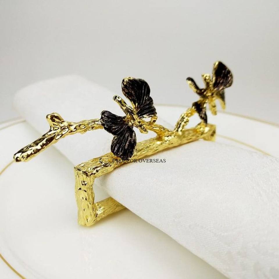 แหวนรัดผ้าเช็ดปากสุดหรูเคลือบอลูมิเนียมสีดำและสีทองดีไซน์เนอร์ดูงดงาม
