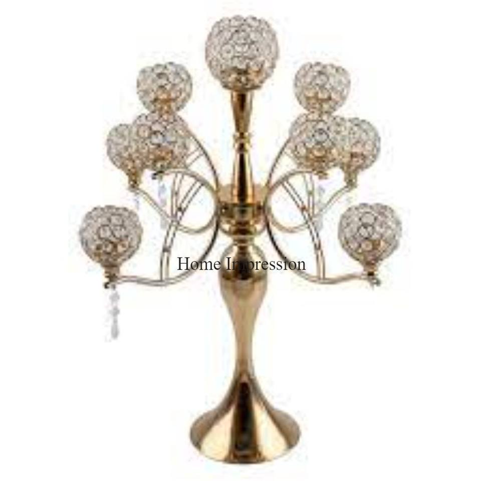 เชิงเทียนโลหะชุบทองด้วยลูกปัดคริสตัลที่วางเชิงเทียนแขน9ส่วน