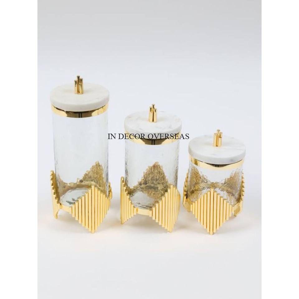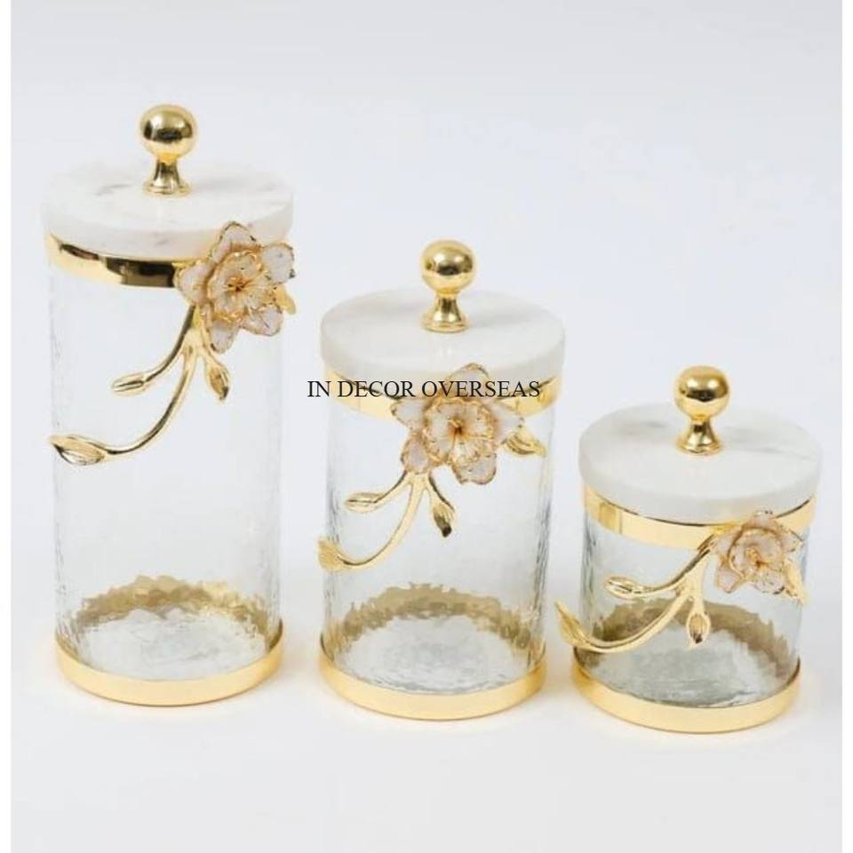 กระปุกแก้วใสคุณภาพสูง ดีไซน์สวยหรู พร้อมฐานโลหะชุบทองคุณภาพสูง และลายหัวใจ สำหรับเก็บอาหาร อุปกรณ์ครัว