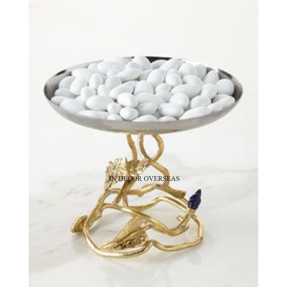 ชามสำหรับตกแต่งโต๊ะทำจากโลหะเกรดดีที่สุดทำจากโลหะเคลือบทองและผลไม้แห้งดีไซน์เนอร์ใบไม้