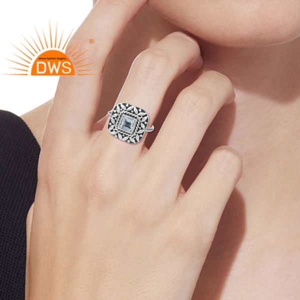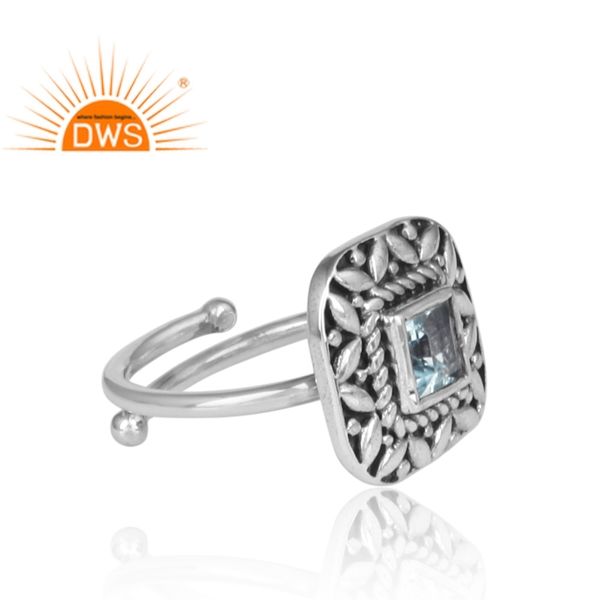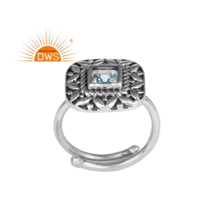 แหวนพลอยบลูโทแพซสีน้ำเงินสวยงาม ชุบโรเดียม เงินแท้ 925 สไตล์วินเทจ สำหรับงานหมั้นและงานเลี้ยง