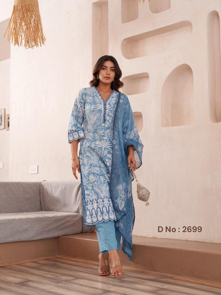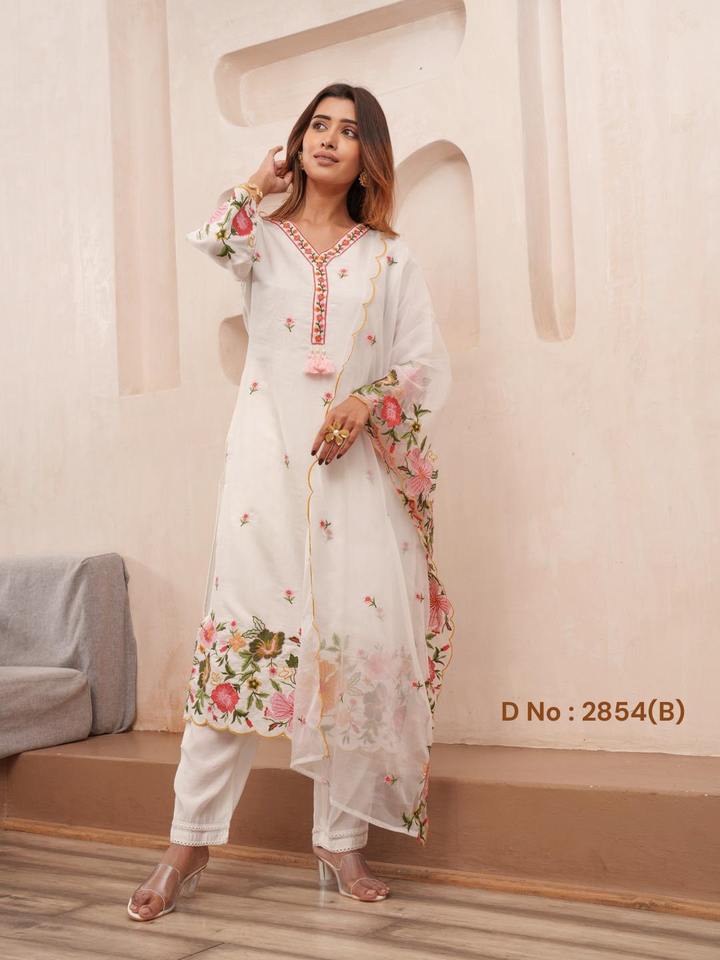 Product Name:Premium Quality Roman Silk With Embroidery Kurti Pant And Dupatta