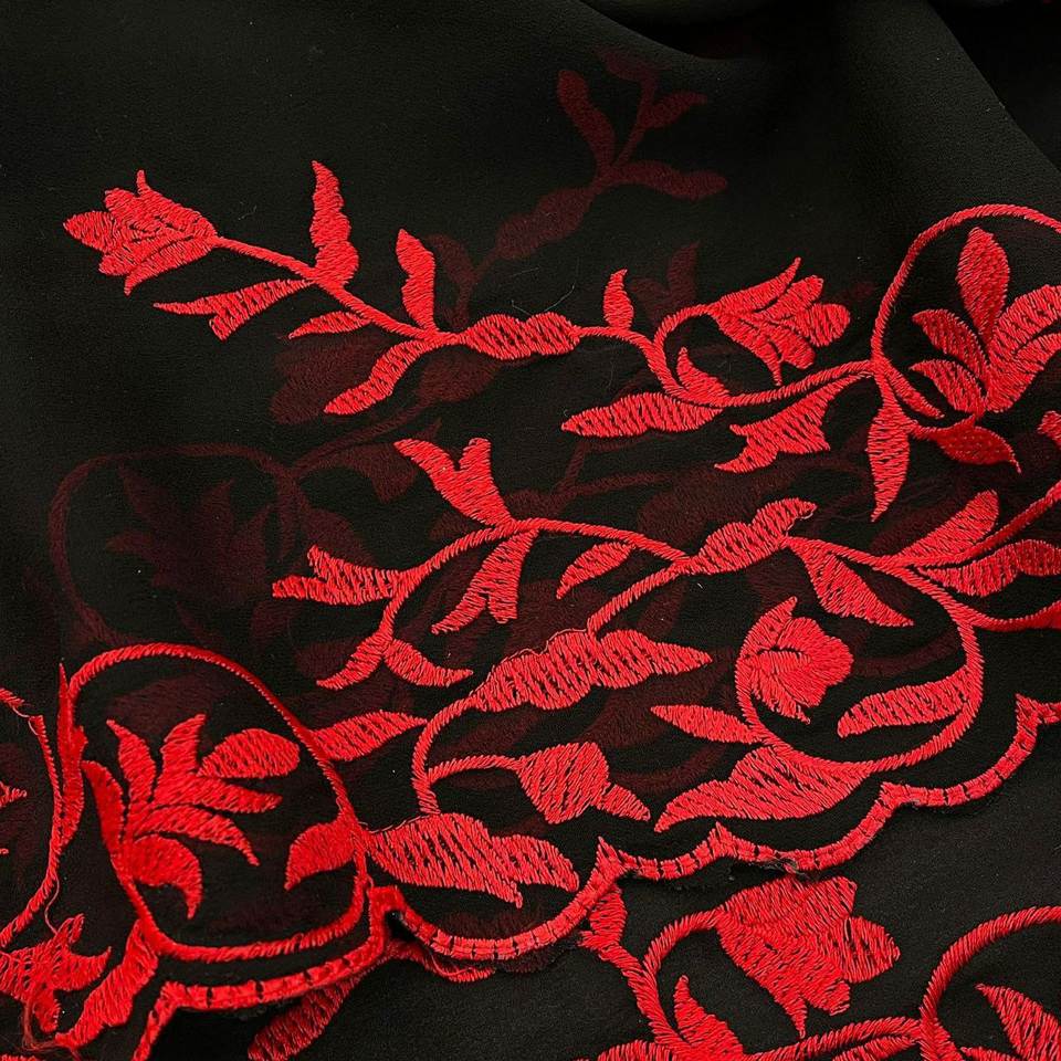 Madhuri d. ที่งดงามเสื้อผู้หญิงผ้าจอร์เจียสีดำผ้าส่าหรีมีงานปักลาย