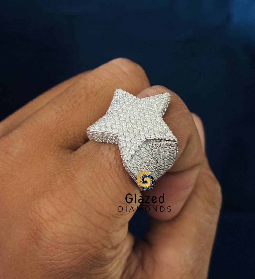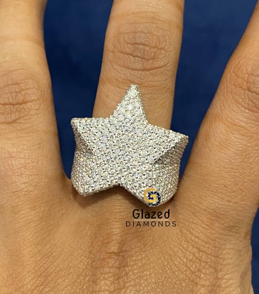 แหวนรูปดาวประดับเพชรโมอิสซาไนต์ทรงกลมเจียระไนแบบบริลเลียนท์ ดีไซน์ฮิปฮอปสุดเทรนดี้ สวยหรู วัสดุเงินแท้ 925