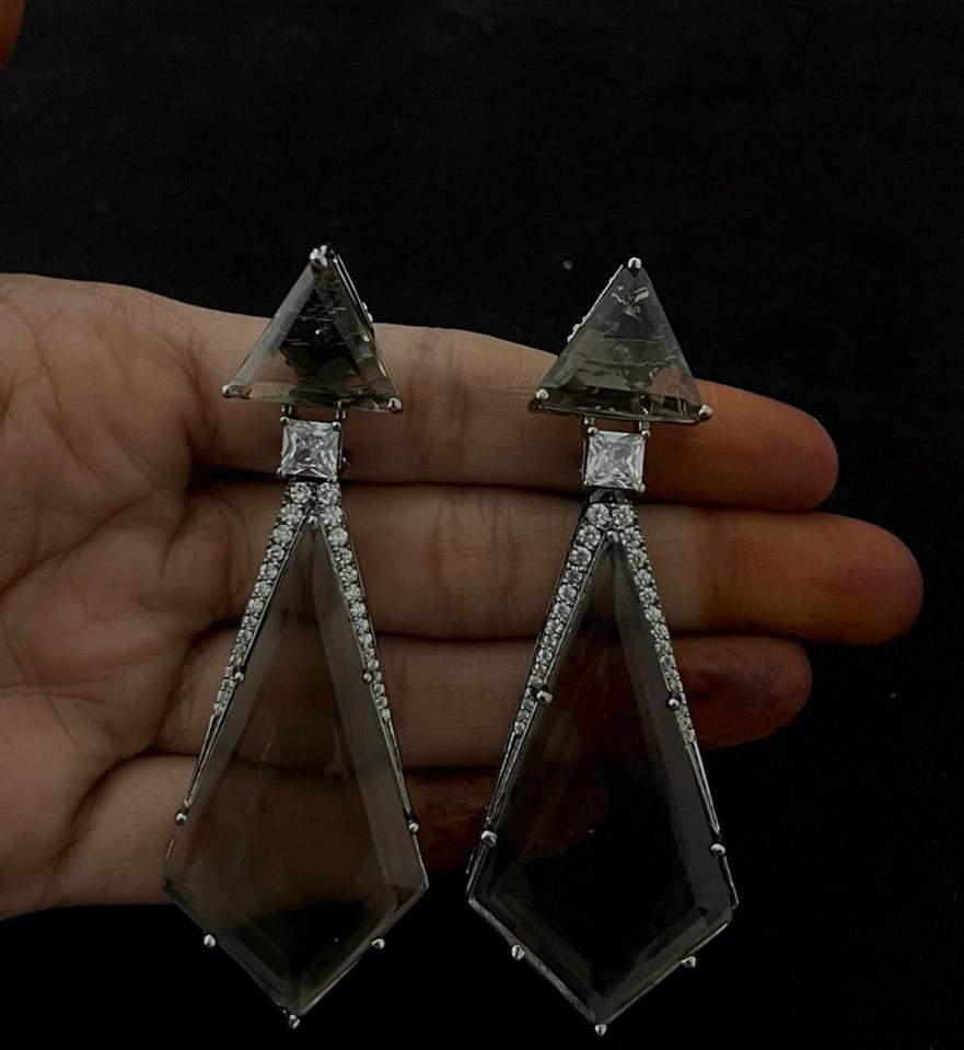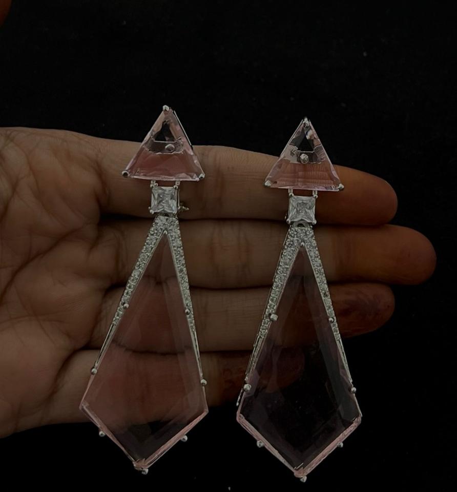 ต่างหูระย้าทรงยาวประดับเพชร CZ คุณภาพพรีเมียม ดีไซน์สวยหรู ชุบเงินบนทองเหลือง เหมาะสำหรับผู้หญิงและเด็กผู้หญิง สวมใส่ในงานเลี้ยงตอนเย็น