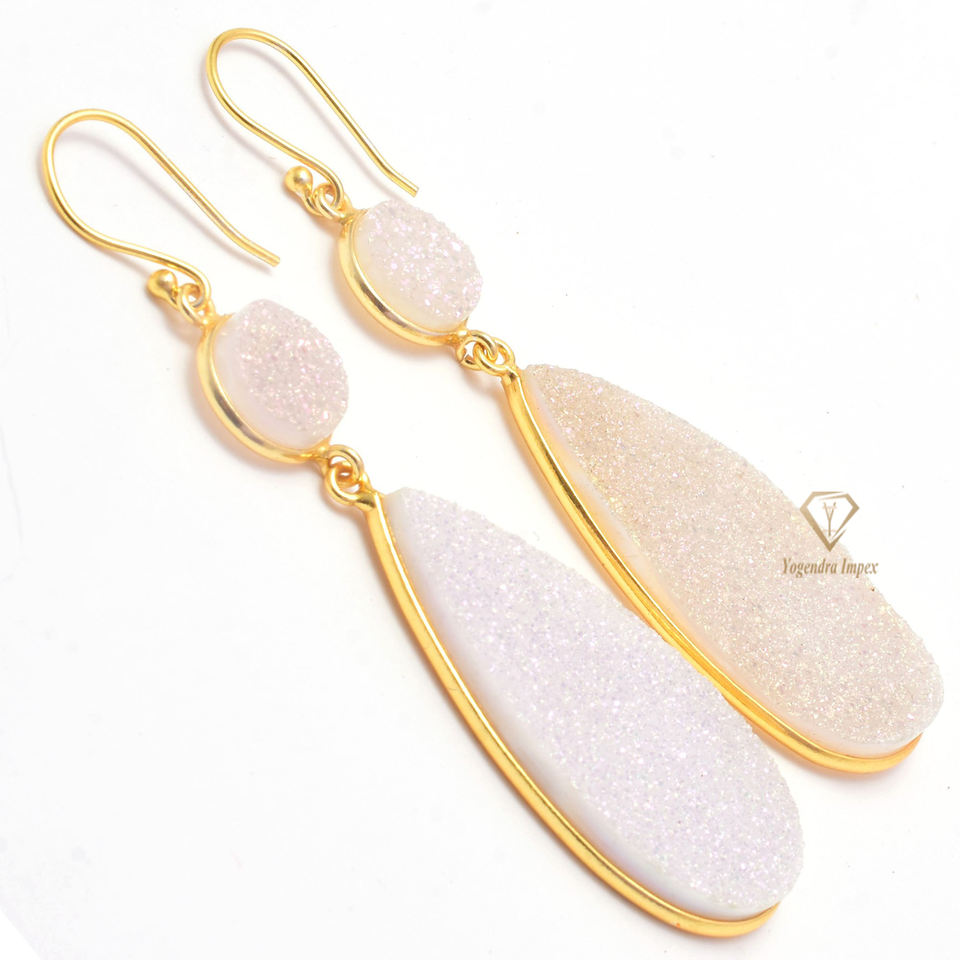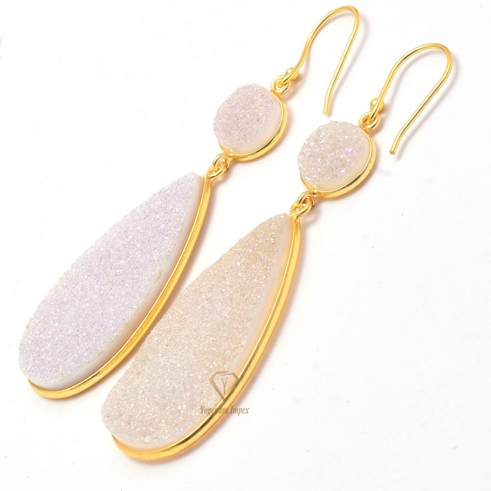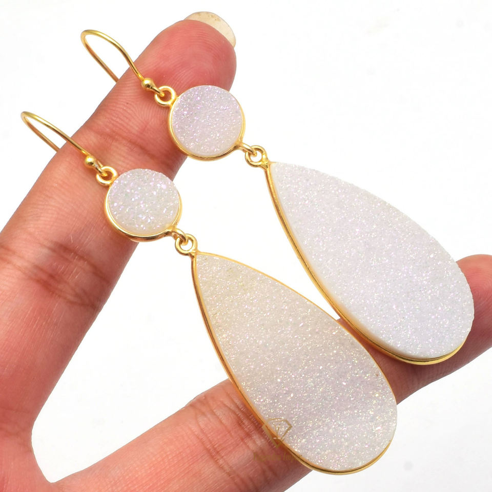 ต่างหูอัญมณีดรูซี่สีรุ้งสุดสวย925ต่างหูชุบทอง18K สีเงินสเตอร์ลิง