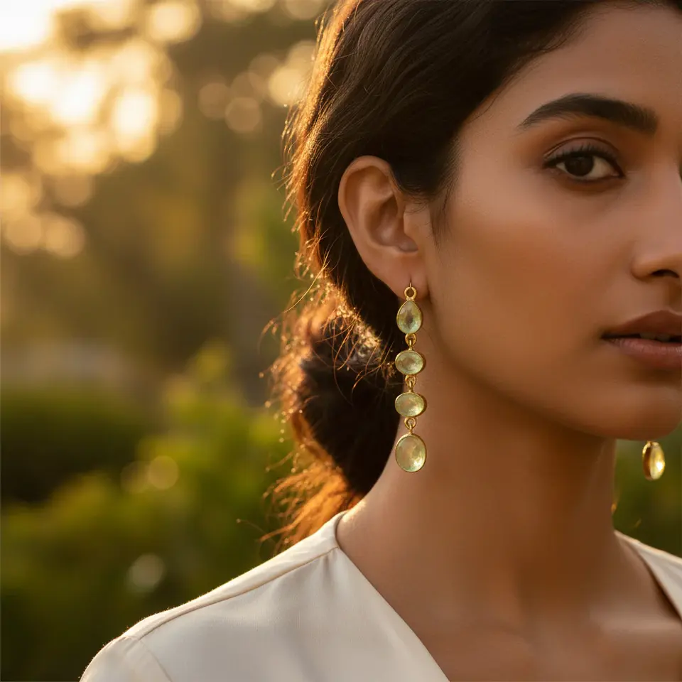 ต่างหูทองแดงประดับพลอยเพอริดอท ดีไซน์สวยงาม เหมาะสำหรับลุคปาร์ตี้สุดอินเทรนด์ของผู้หญิง