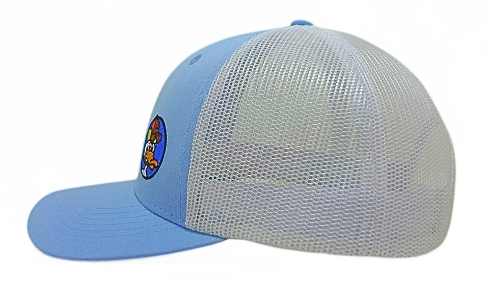 Gorras สีฟ้า/สีขาวปักโลโก้ Trucker หมวกคุณภาพสูงกีฬาหมวกราคาถูกในเวียดนามตาข่ายกลับเล็กน้อยโค้งปีก