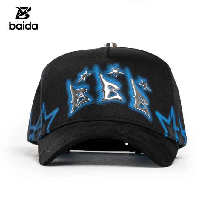 หมวกแก๊ปปักลายโลโก้ 'BBB' แบบ 5 ชิ้น ทำจากผ้าด็อบบี้ ซูเอ็ด พิมพ์ลายดาวสีน้ำเงิน