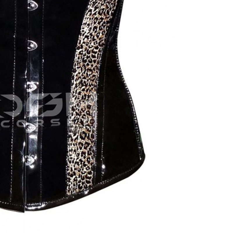 เสื้อรัดเอวทรงคอร์เซ็ทแบบกอธิคสีดำ ทำจาก PVC ระบายอากาศได้ดี ประดับหมุด พร้อมโครงเหล็กและตัวล็อคด้านหน้า