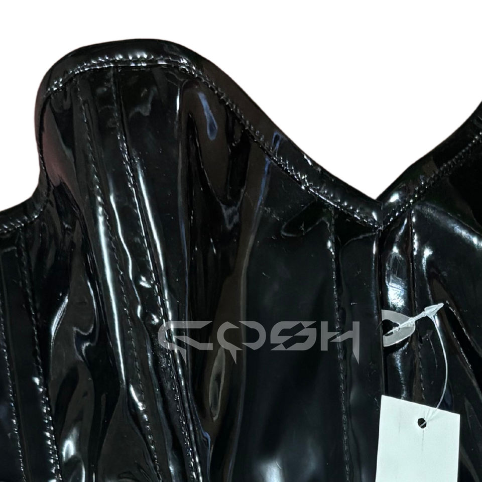 เสื้อครอปท็อปทรงบัสติเยร์แบบอสมมาตรสีดำสไตล์โกธิค วัสดุไวนิล สำหรับใส่ไปคลับ ผู้จำหน่ายชุดคอร์เซ็ท