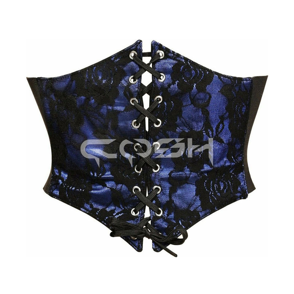 เข็มขัดคอร์เซ็ทแฟชั่นผ้าซาตินสีน้ำเงินกอธิคประดับลูกไม้สีดำลายดอกไม้