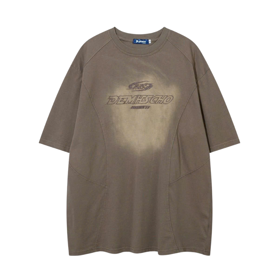 เสื้อยืดพิมพ์ลายปราสาทแบบกอธิคทรงสี่เหลี่ยมตัดด้วยเลเซอร์ทรงโอเวอร์ไซส์แฟชั่นเครื่องแต่งกายแนวสตรีทสำหรับฮาโลวีน