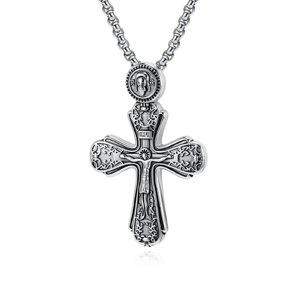จี้กางเขนแบบกอธิค ทำจากไทเทเนียมสตีล สร้อยคอสำหรับทุกเพศ สแตนเลสสตีล ของขวัญเครื่องรางทางศาสนาสำหรับผู้ชายและผู้หญิง