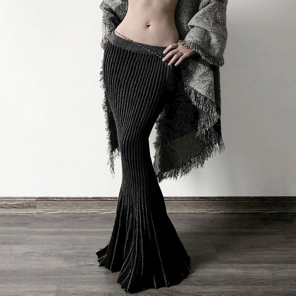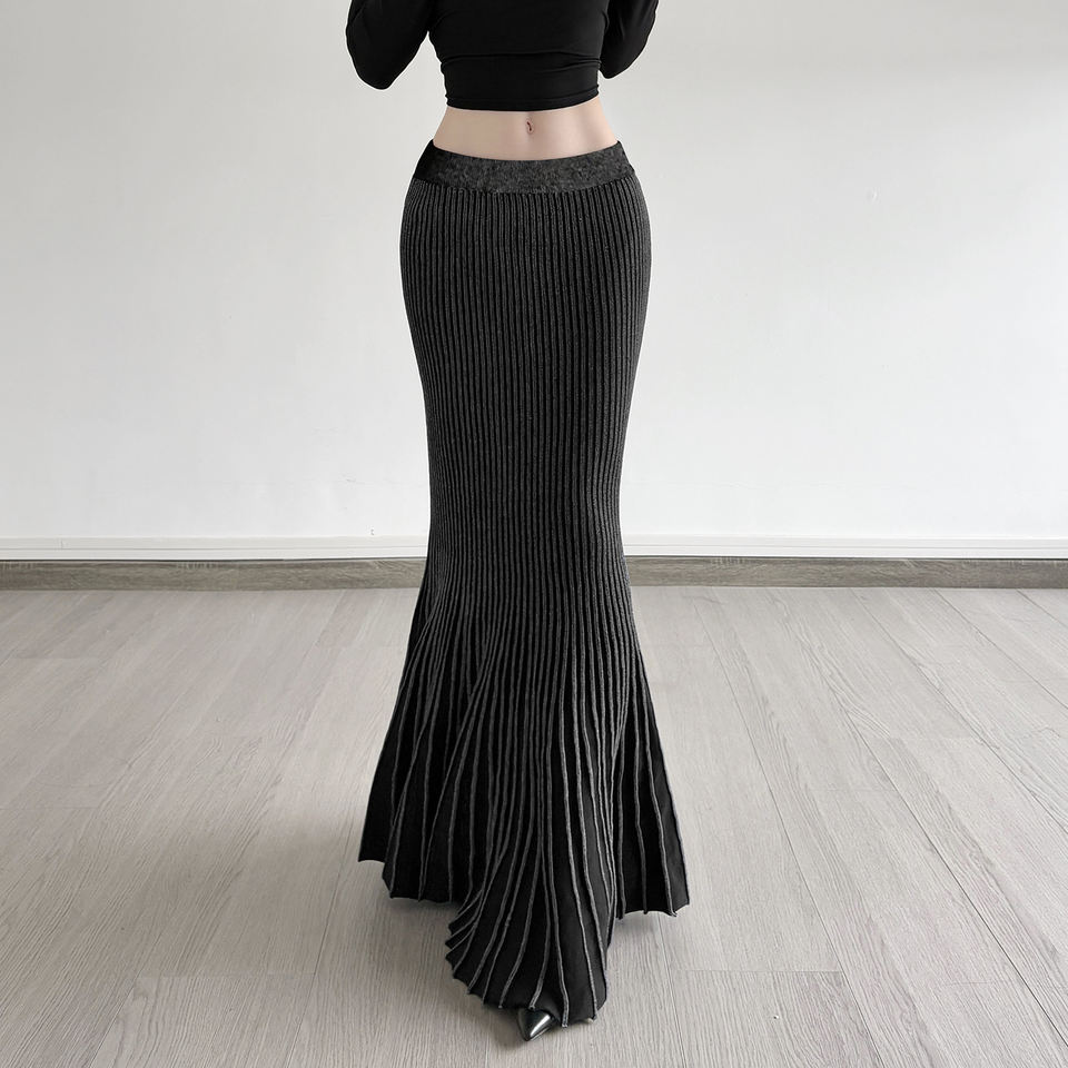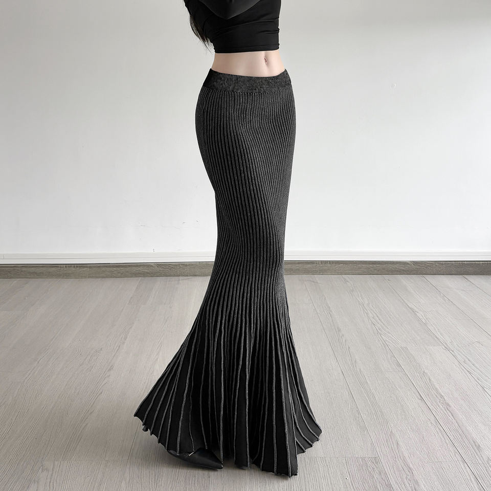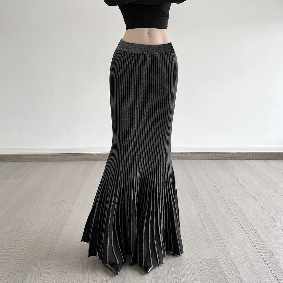 กระโปรงทรงเมอร์เมดถักลายโกธิคสีเข้มตัดกัน แต่งตะเข็บแบบพิเศษ เอวสูง ทรงเข้ารูป สไตล์เรโทร สำหรับผู้หญิง