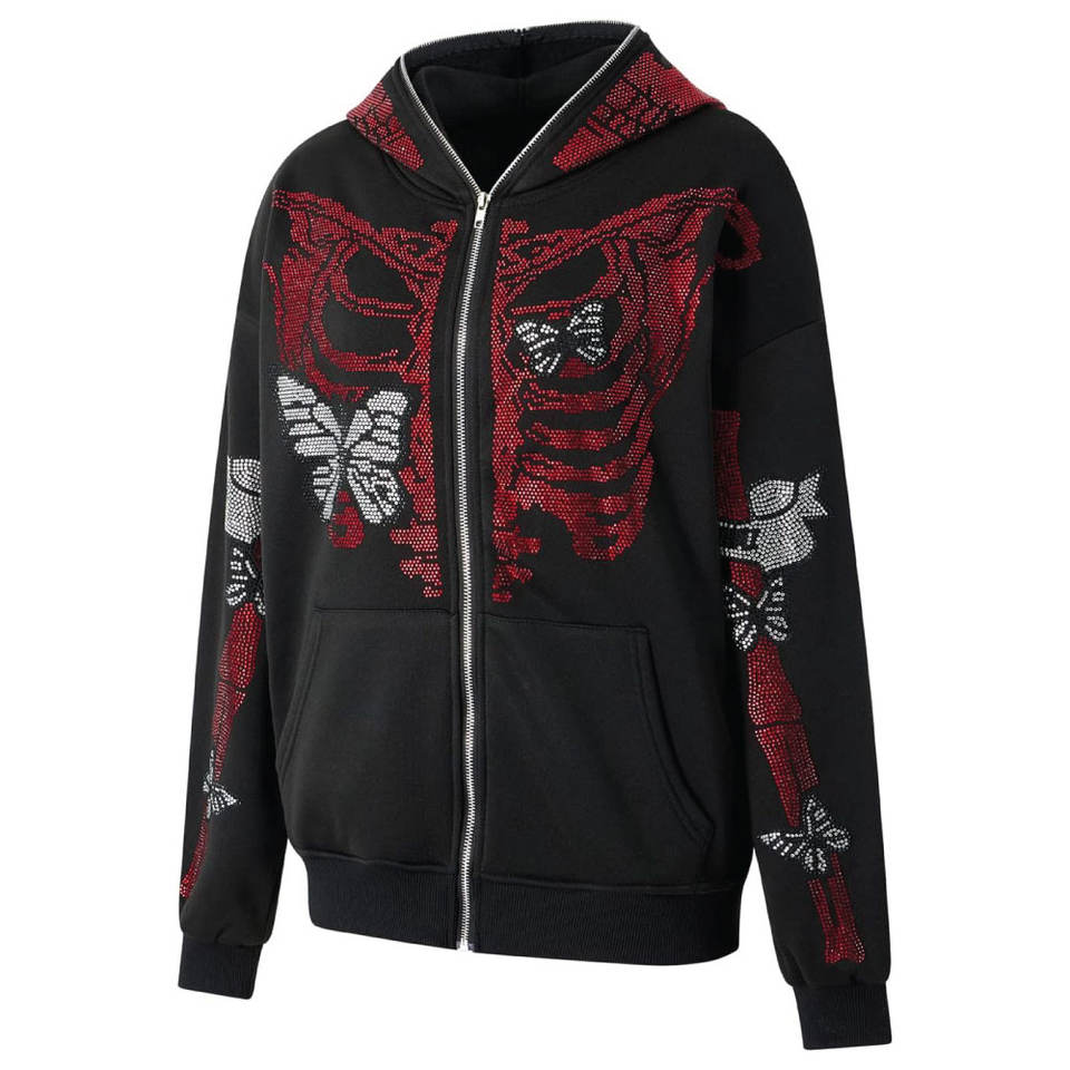 Keywords:Men's Full Zip Up Rhinestone Hoodies