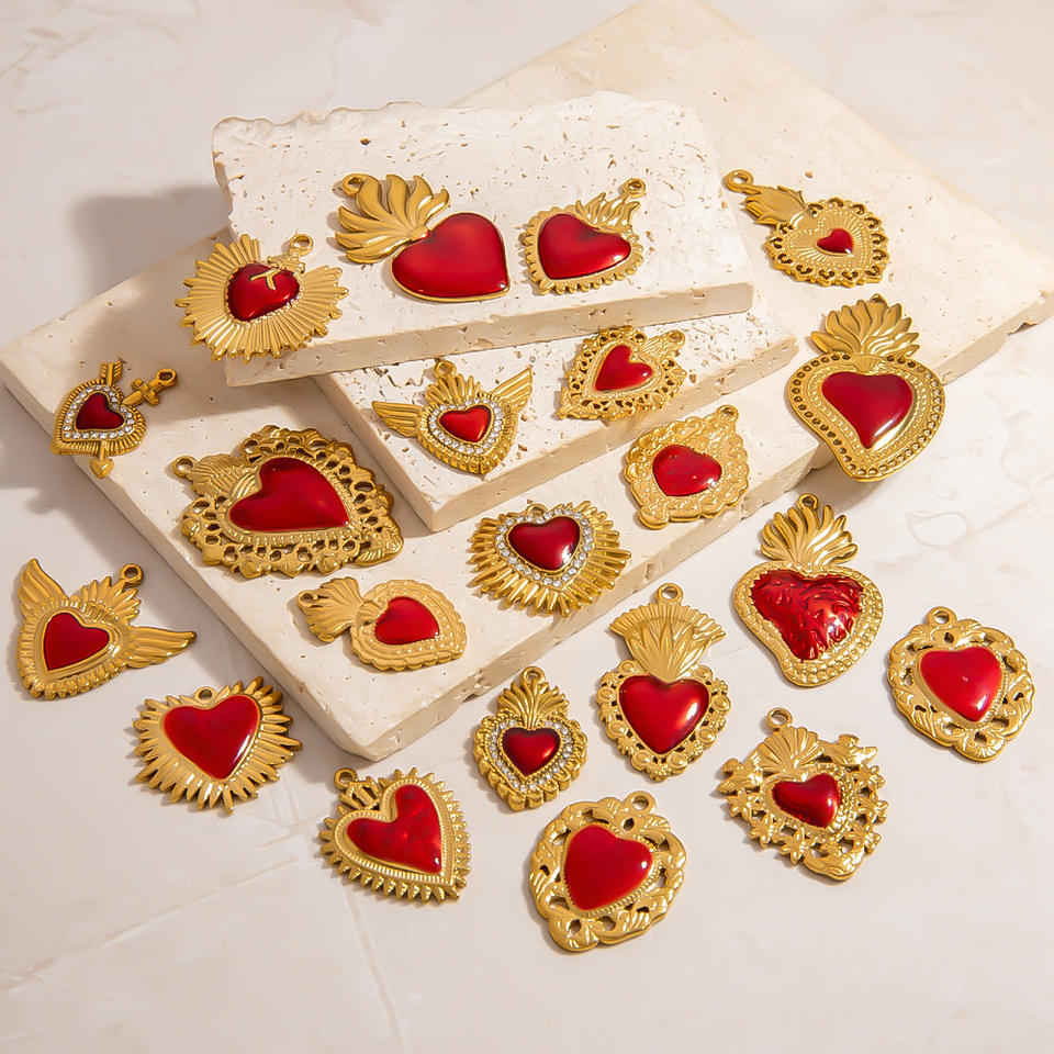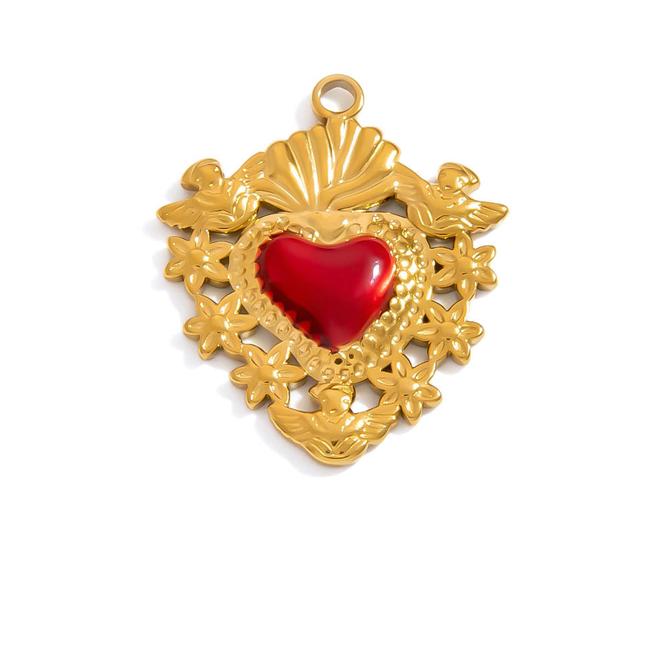 จี้รูปปีกหัวใจสไตล์โกธิค สแตนเลสสตีล ชุบทอง 18K แบบฝังขอบ สำหรับทำเครื่องประดับ DIY อุปกรณ์เสริมสำหรับสร้อยคอ ใช้ได้ทั้งผู้หญิงและผู้ชาย