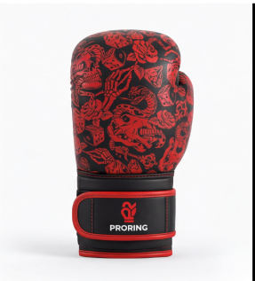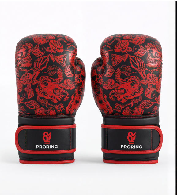 ถุงมือชกมวยพิมพ์ลายกุหลาบกอธิคสีดำแดงหนัง PU มวยไทยคิกบ็อกซิ่งถุงมือฝึกซ้อมสปาร์ริง