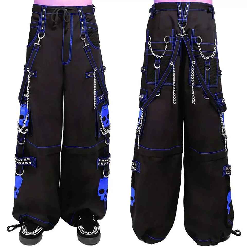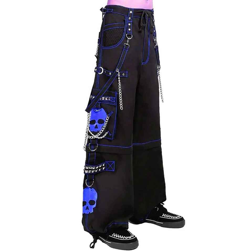 Gothic casual streetwear trousers for men slim fit cargo pants with lace up details zipper pockets and chain for daily wear
