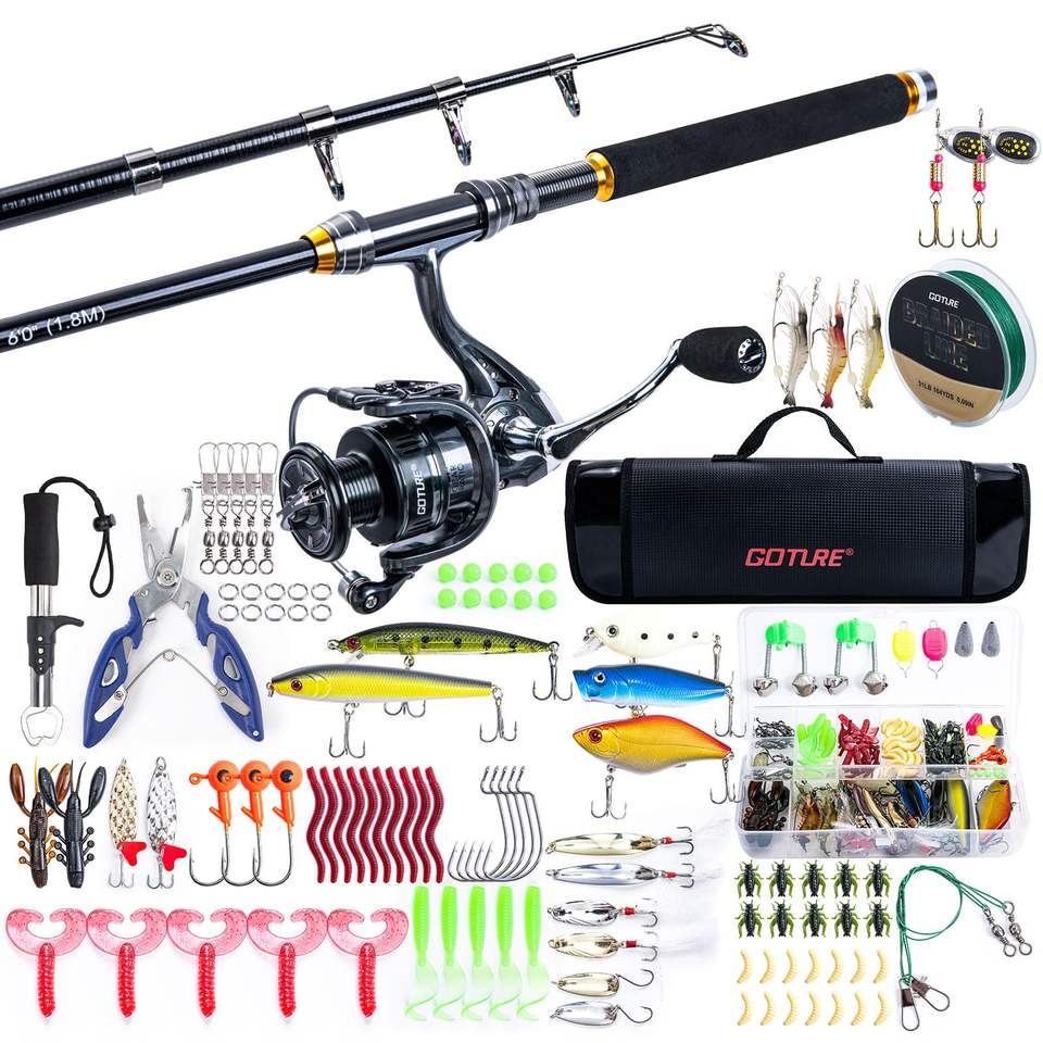ชุดคันเบ็ดตกปลาแบบยืดหดได้ Goture พร้อมรอก คันเบ็ดคาร์บอนไฟเบอร์แบบพกพา รอกสปินนิ่ง สายเอ็น ชุดเหยื่อตกปลา พร้อมกระเป๋าใส่