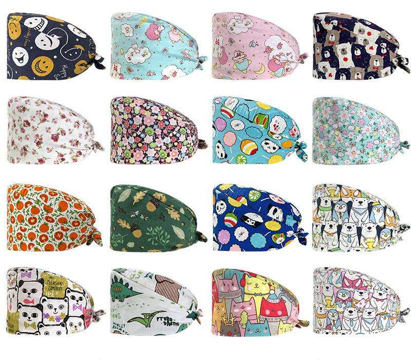 หมวกสครับฟันรูปทรงน้ำเต้าปรับได้แบบผูกด้านหลังนุ่มพิมพ์ลายสัตว์สำหรับทันตแพทย์ผู้ช่วย