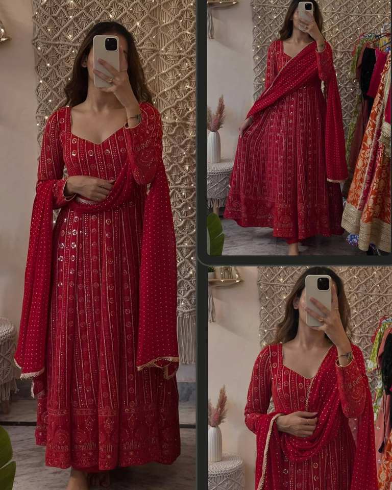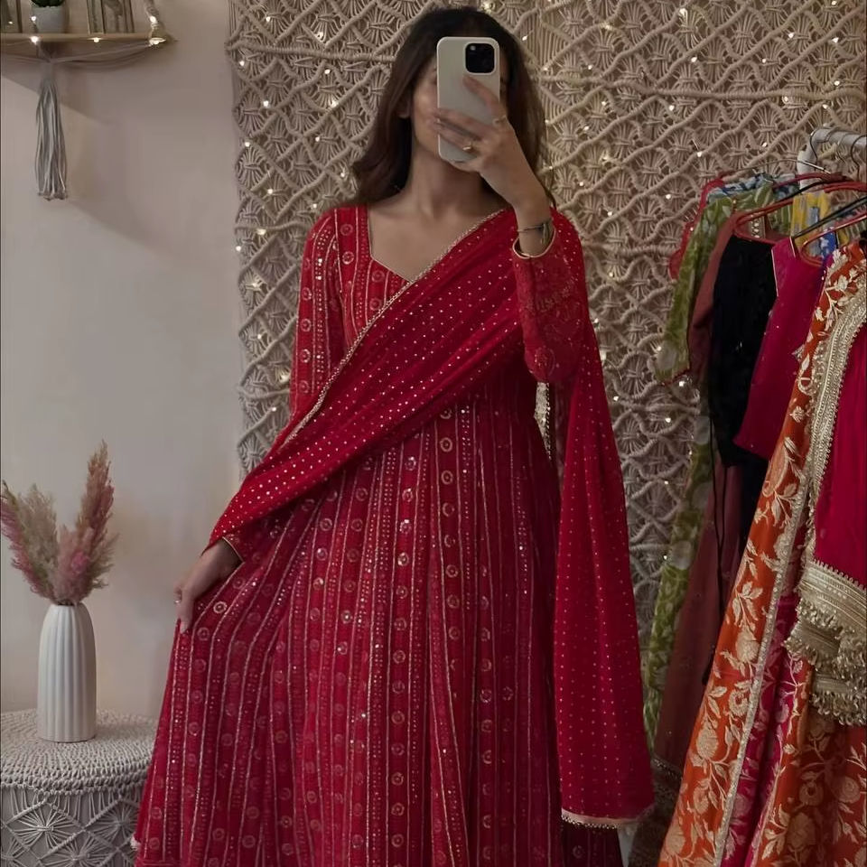 ชุดเดรสยาวพร้อมผ้าคลุมไหล่ ผ้าจอร์เจตต์ ปักลายดอกไม้ ปักดิ้น ปักด้ายหลายเส้น ปักลายซารี แขนยาว รุ่น VISHNU K