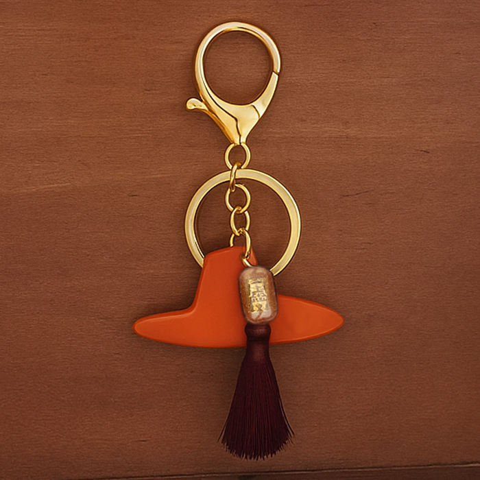 พวงกุญแจหมวกแก๊ตแบบดั้งเดิมของเกาหลีทำมือ [Goyu] พิมพ์ลายเคลือบโลหะผสมสังกะสี นำโชค จี้ห้อยกระเป๋าสีดำ พู่ห้อย ของตกแต่งจากเกาหลี