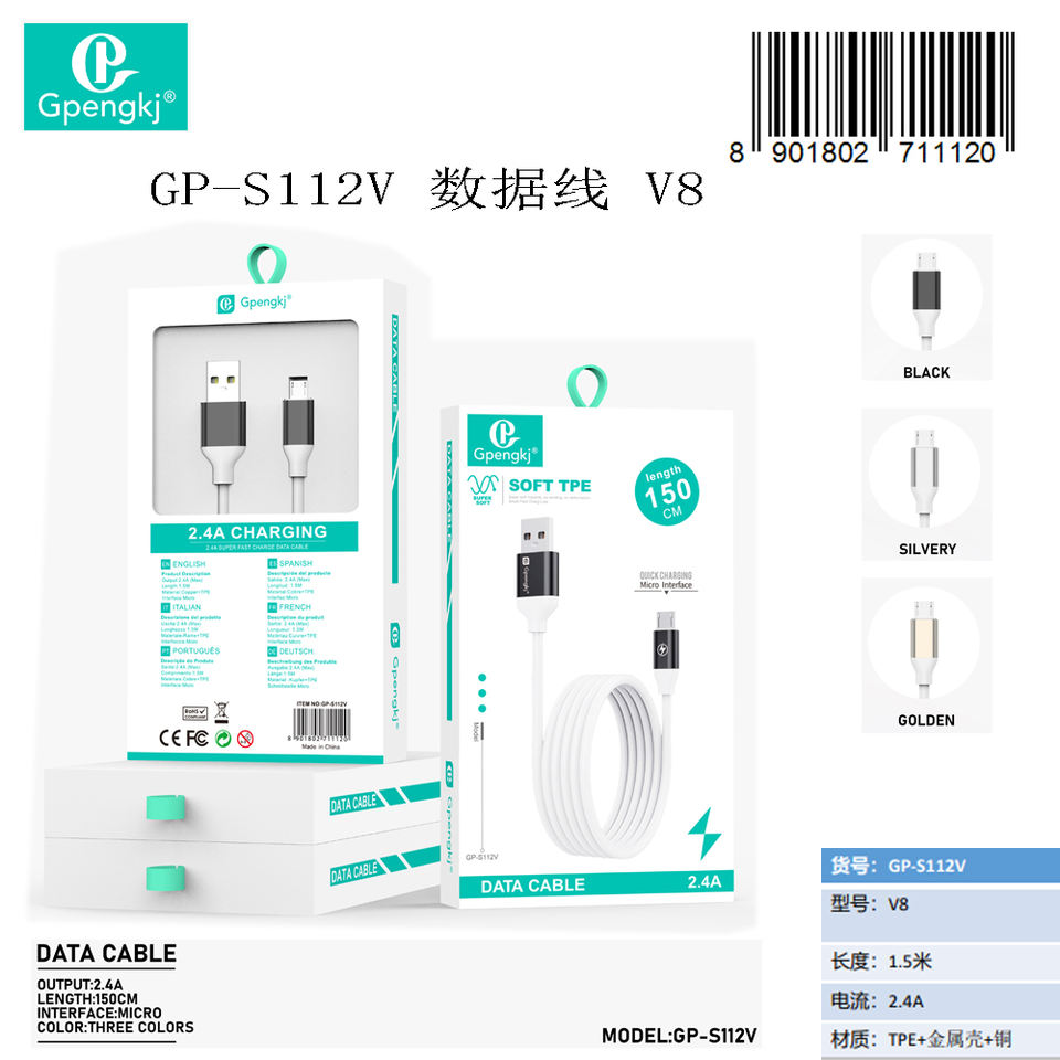 สายเคเบิลข้อมูลเกพิงกี้ วี 8 ไมโคร ยูเอสบี 2.4A สายชาร์จแบบนุ่ม แจ็คเก็ต TPE ตัวนำทองแดงสำหรับอุปกรณ์อิเล็กทรอนิกส์