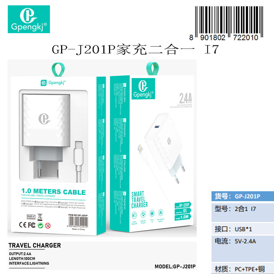 เครื่องชาร์จ Gpengkj 2-in-1 แบบ Dual USB 5V 2.4A QC3.0 พร้อมสายชาร์จแบบยืดหดได้สำหรับโทรศัพท์มือถือ